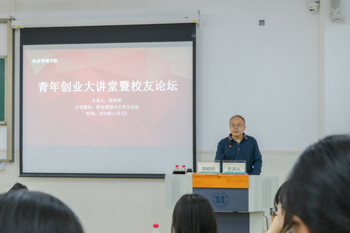 林宽副院长首先向同学们介绍了陈锐彬师兄,陈锐彬现任广州羊臣羚电子商务有限公司总经理兼执行董事,这是一家由经管学院2012届校友陈锐彬、杨俊安、林杰锐发起创立的母婴品牌运营商,经过5年的发展,目前年销售额已超过5000万。希望同学们通过他们的创业经历有所收获。