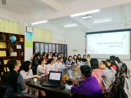 11月20日,地理与旅游学院邀请广东旅联国际旅行社有限公司及深圳建南国际旅行社有限公司惠州分公司总经理杨哲钧返校5-311会议室开展创客沙龙,辅导员及25名19级旅游管理专业学生参加本次沙龙。