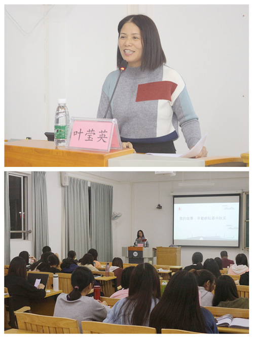 叶莹英老师从“自我介绍”“题外话”“我的故事”“总结反思”几个方面诠释了“辛勤耕耘,春华秋实”的主题。她以轻松愉悦的方式,充分结合自身的教学经历,向同学们讲述了她教学生涯中的成长与收获,并提出了自己对于教师这一职业的三个看法。一是要重视教师对学生的影响力;二是要多准备,少埋怨;三是要珍惜当下,快乐生活。在此基础上,她总结了成为一名受欢迎的教师的四点经验,一是知识,大学时期的专业要过关,知识储备要丰富;二是特点,任教初期要树立自己的教学风格,给学生留下深刻印象;三是创新,课堂教学设计要创新,授课要活跃;四是反思,课后要常反思,多用心,细心总结经验。