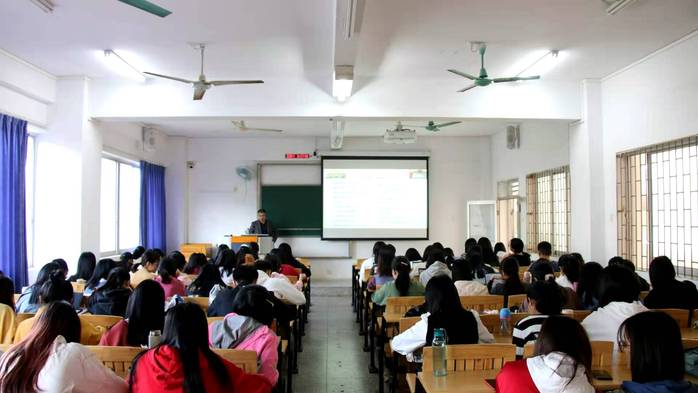 郑旺吉老师以自己将近30年的从教经验与实例切入,向我们阐释了何为师德,并引用《教师专业背景下的师德建设》一书教诲我们:为人师表,教书育人,自尊自律,要以人格魅力和学识魅力感染学生,成为学生健康成长的指导者和引路人。而后郑老师回忆起母校与恩师,表示正是恩师的高尚师德对自己职业生涯产生了深远影响。我们将来作为人民教师,要得到社会对我们的尊重,就必须研究,必须进行自身专业化建设,加强师德建设,重建自身价值。最后郑老师激励在座师范生要辛勤耕耘,加强自身修养,共筑教育美梦,抒写教育情怀,才能收获累累硕果。