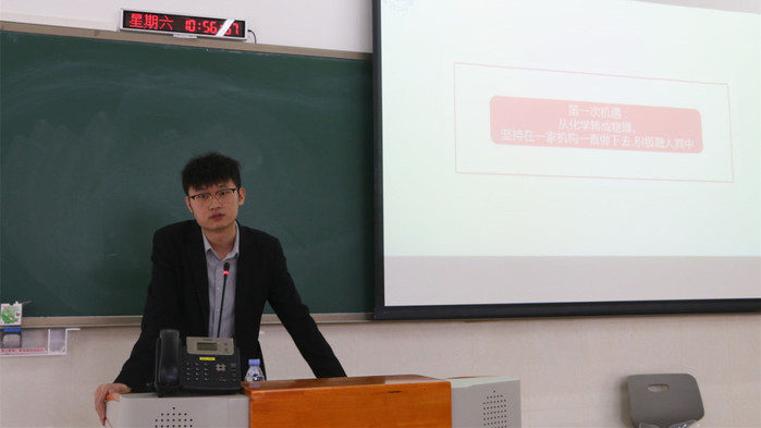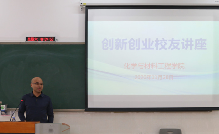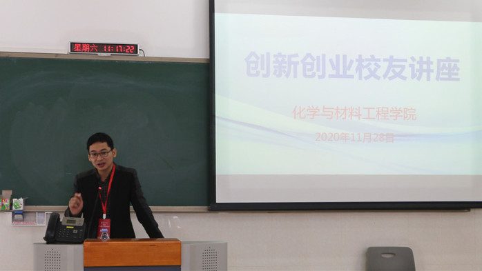 本网讯 为了培养学生勇于创新的精神,树立正确的创业观,11月28日上午,化学与材料工程学院在教学实验大楼205课室举办校友创新创业讲座。本次讲座邀请了学院优秀校友代表张良清、蔡云鹏、杨良密、刘威依次分享了他们的创业经历以及创业心得,刘国聪院长、肖定书副院长、辅导员刘振聪老师、江佳芬老师、应化及化工专业学生代表参加了此次讲座。