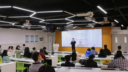 本网讯 12月5日上午,经济管理学院第四期双创管理实验班第五讲围绕项目的创意与孵化主题在教学实验大楼501课室开展。2008级国际经济与贸易专业校友、羊臣羚科技有限公司创始人兼CEO陈锐彬先生作为嘉宾进行分享,学院副院长刘春梅全程参与。
