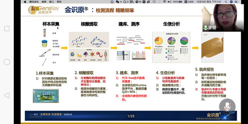 本网讯 12月13日晚,生命科学学院2010届生物技术专业优秀校友,广州金匙医学检验有限公司总经理廖媚应邀给学院生物质量安全检测特色班学员开展“从新冠病毒发现到病原宏基因组检测的应用”专题讲座,讲座以腾讯会议形式开展。生物质量安全检测特色班18-19级学员和部分教师参加了讲座,讲座由陈兆贵教授主持。