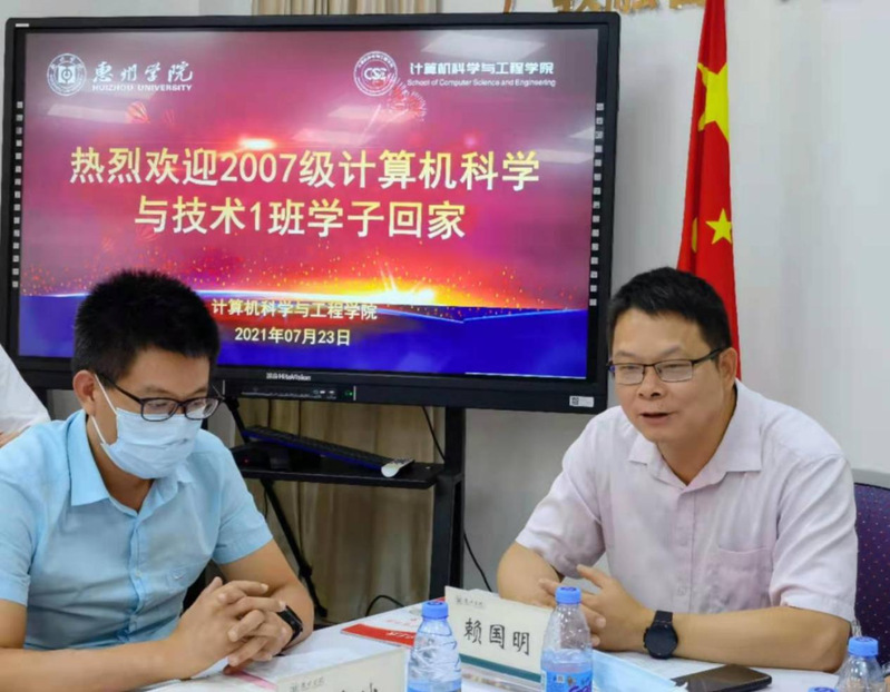 2021年7月24日上午,我校计算机科学与工程学院2007级计算机科学与技术1班校友纪念毕业十周年返校聚会。计算机科学与工程学院院长赖国明、党总支书记陈璐、副院长汪华斌、党总支副书记陈贤斌、2007级计算机科学与技术1班班主任吴志攀、实验室主任肖东、办公室主任刘娟、辅导员杨阳和陈珊珊以及2007级计算机科学与技术1班校友参加了座谈会。座谈会由陈璐书记主持。